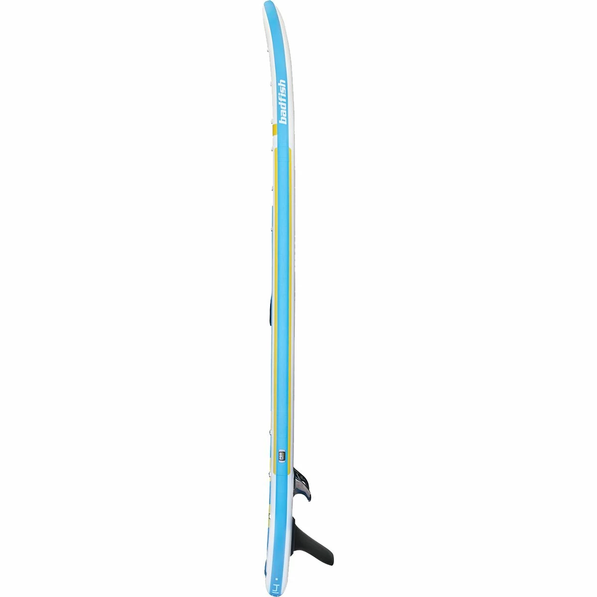 Badfish was inspired by sea kayaking trips in Baja, and brought that mindset home when they shaped the Selfie Inflatable Stand-Up Paddleboard to track miles quickly and simply. It combines a stable width with a pointed nose that inspires swift speeds from mellow paddling. Badfish’s EXO Skeleton construction improves the deck pad’s structure when we’re standing on it, which is a huge improvement compared to standard SUPs. The bungee straps include specially tested D-rings that secure extra gear when we’re traveling for a long time, and there’s a water bottle pocket so we can get a drink in between paddles.