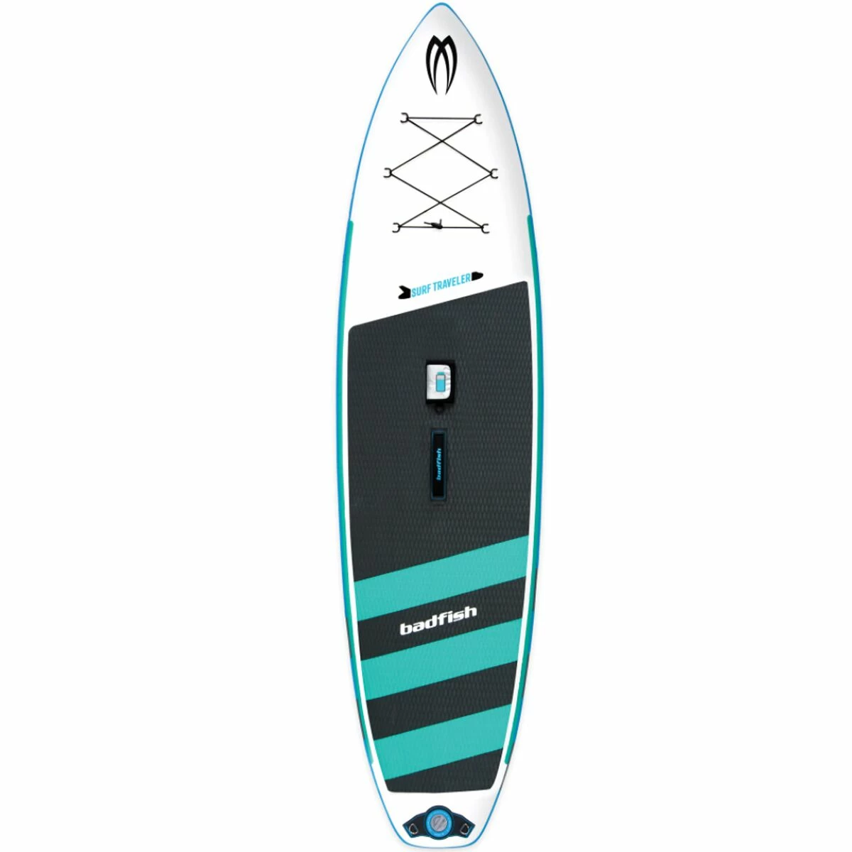 A favorite of ours for its versatility, the Badfish Surf Traveler Inflatable Stand-Up Paddleboard was built for a blend of ocean surfing and all-around performance. This balance is achieved by the glide-happy yet maneuverable combination of a pointed nose, square tail, and long length. To ensure that this board can hang(ten) when a swell rolls in, the tough-as-nails fixed tri-fin system provides the maneuverability necessary for more advanced wave surfing.