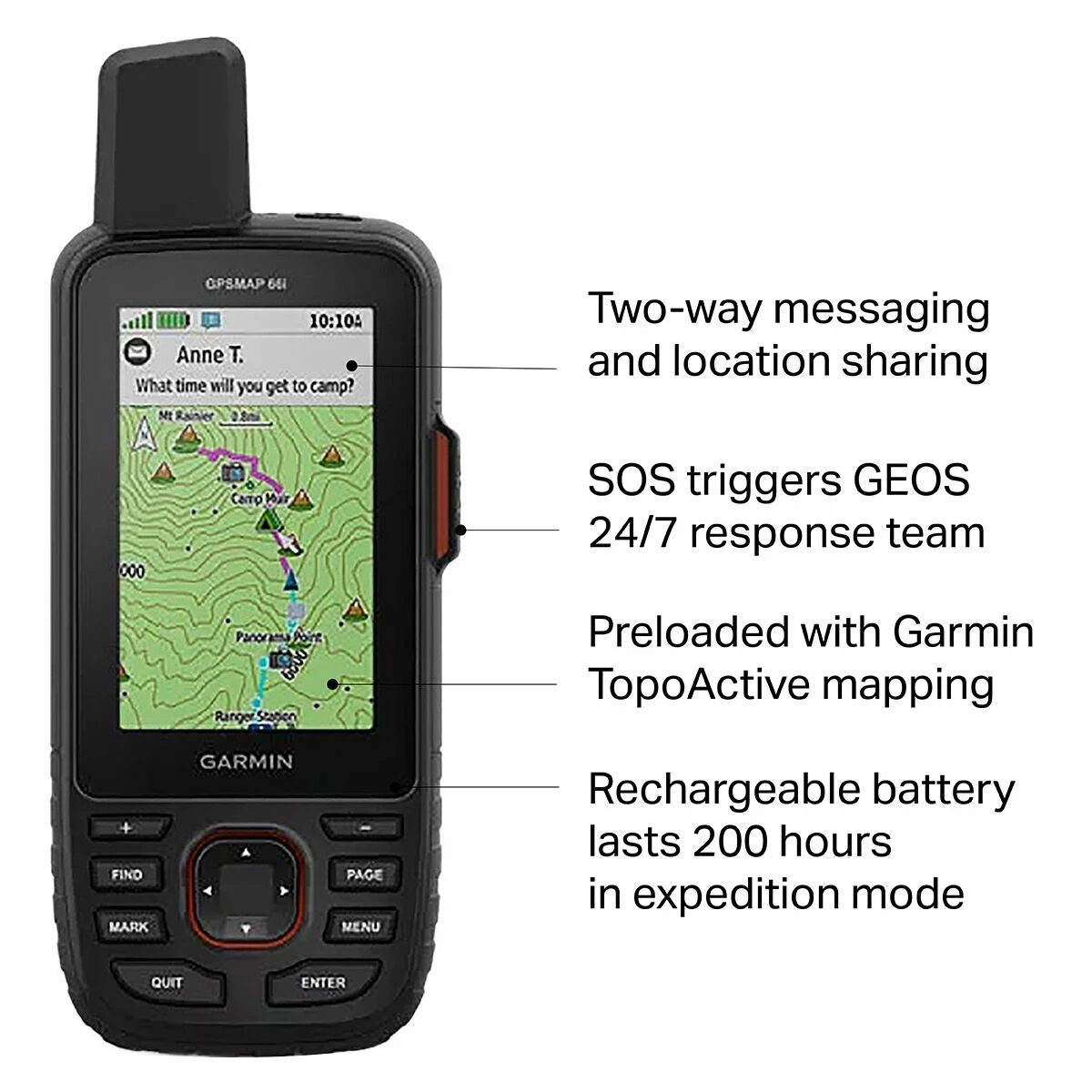 The Garmin GPS MAP 66i is our ticket to staying connected to the world, even in the depths of the backcountry wilderness. Satellite communication enables two-way messaging and LiveTrack location sharing to keep our loved ones informed of our whereabouts, and with a subscription to inReach we can trigger an SOS to the GEOS 24/7 emergency response team in case of emergency.