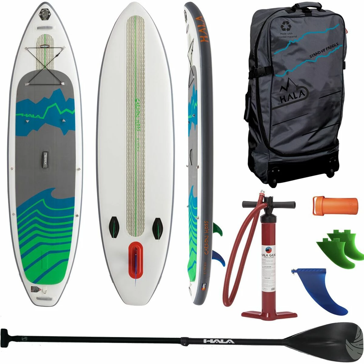 Whether we’re touring through shady everglades in Florida or sightseeing in the San Francisco Bay, we do it on the Carbon Hoss Inflatable Stand-Up Paddleboard by Hala. This larger all-around profile SUP is designed for steady cruising in any environment. With it’s moderate rocker design, we easily glide through water with it’s raised tip and flat midsection, while the raised tail gives us increased response in flowing rivers. And with the performance Carbon Construction, we get the stiffness and durability of a hardboard but with the convenient storing capabilities of an inflatable, so we can easily store in our trunk or studio apartment.