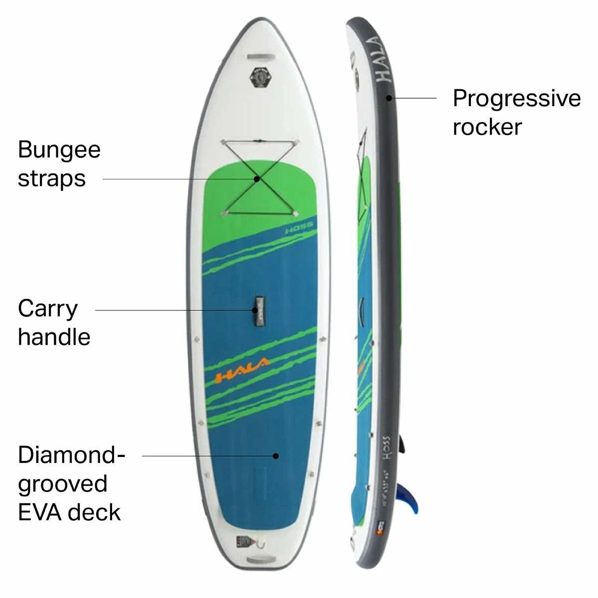 - Large all-around board shape for stability and high-weight capacity