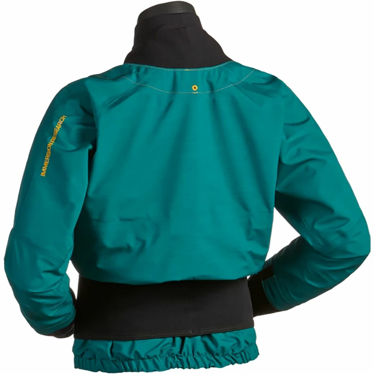 The 7Figure dry top is Immersion Research’s highest performing dry top in its technical wear line, meaning this jacket is ready for any aquatic adventure you can throw its way. The new 2019 top has an updated cut that eliminates excess fabric and provides a slimmer performance fit. The semi-fitted shape enhances mobility for paddling, but still provides sufficient room for layering on really cold days. Take this top on your next big water day when water temperatures are chilly and the rapids are roaring, your torso will be covered by premium a three-layer polyester shell, finished with a DWR coating. The 7figure shell not only repels water but leaves you feeling lighter as the jacket breathes better, dries quicker and reduces internal condensation. Staying dry will help you stay on the water longer letting you comfortably tackle drops and surf pockets to your heart’s content. Latex neck and wrist gaskets provide reinsurance against that shockingly cold runoff, while neoprene over cuffs protect that seal and offer a comfortable closure. Feel extra comfortable making advanced whitewater moves with the super sticky one-piece neoprene tunnel that interlocks with your skirt to keep your lower half protected.