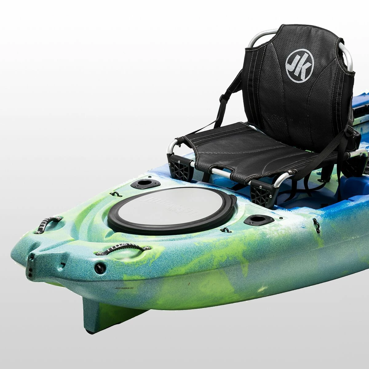 The Big Tuna is one of Jackson’s largest-capacity boats that can be ridden for solo-fishing trips as well as tandem adventures. It has a wide base that offers plenty of stability for standing, and the rockered profile eases turning for tracking and navigating. Rotatable seats let us paddle in traditional tandem positions and a variety of other positions more ideal for solo paddling. Both seats have Ergo Seat covers that are compatible with Jackson’s Molle Pouch, and they’re replaceable for easy cleaning. The unique Tuna Tank can be used as a livewell or dry storage after you drill small holes in the front and back.