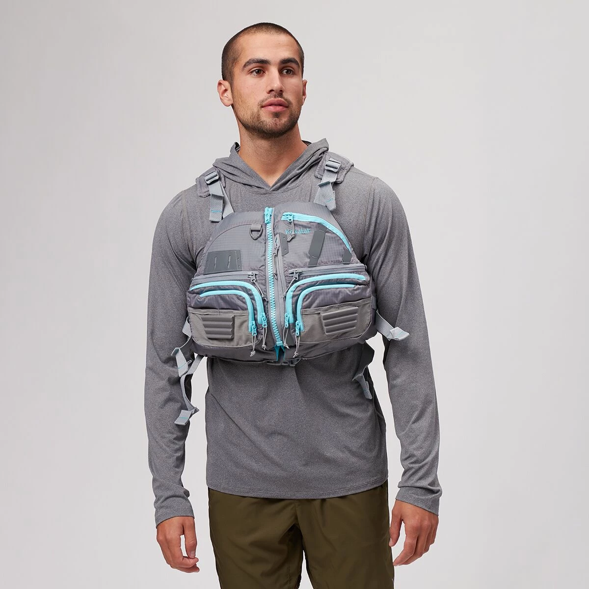 Designed specifically for fishing from a kayak, the Leviathan Personal Flotation Device comes packed with all the bells and whistles you need to stay focused on the fish. For peace of mind on the water the Leviathan boasts a 16lb buoyancy rating that makes it easy for you to keep your head above water in the event of a spill. On days when you don’t take a tumble, the leviathan has your back with super durable nylon in high wear areas paired with quick drying Araprene mesh on the back and shoulders that work well with high back seats on boats. To keep your flys, bait, and tools nearby at all times this PFD boasts 14 total pockets that let you organize your goods however you want.