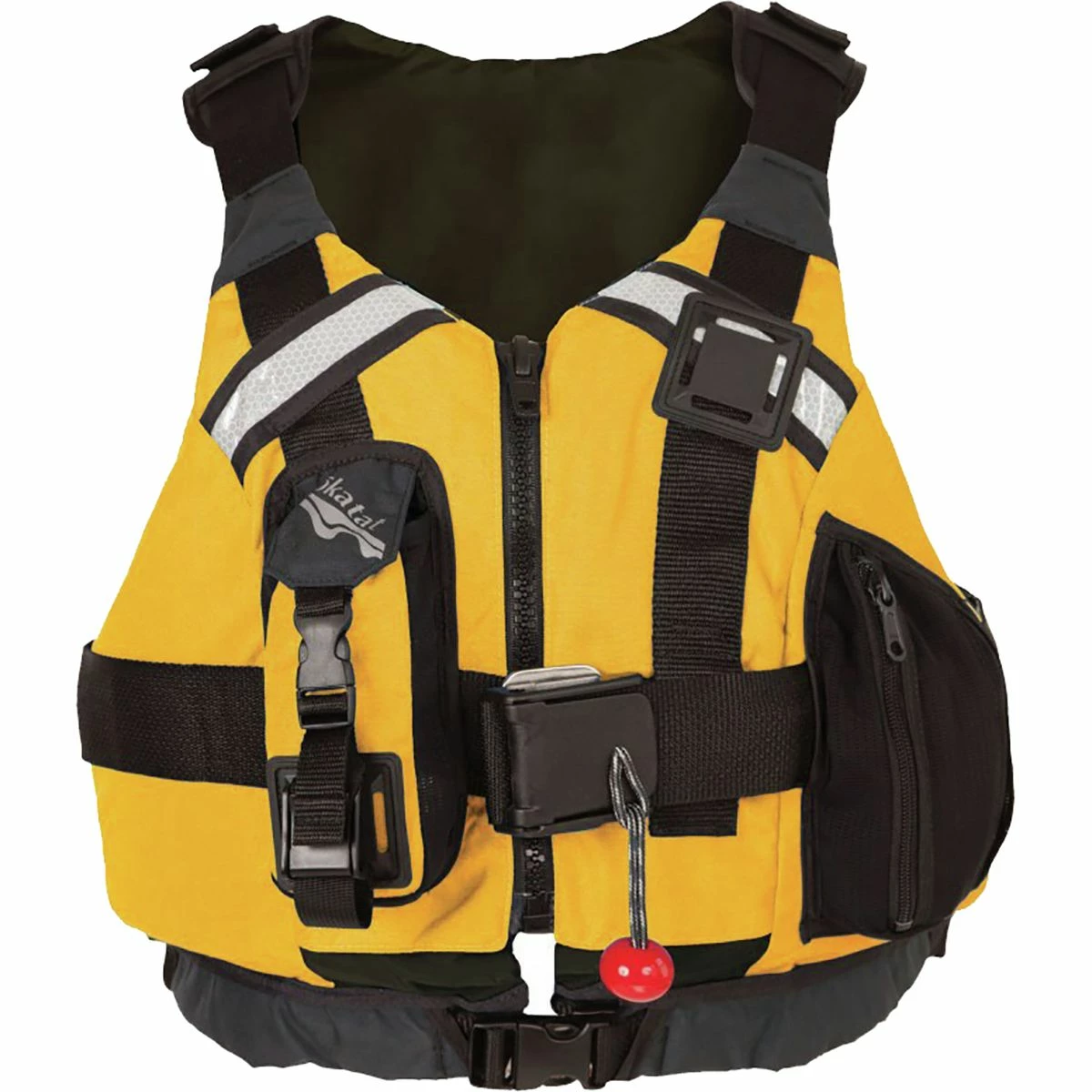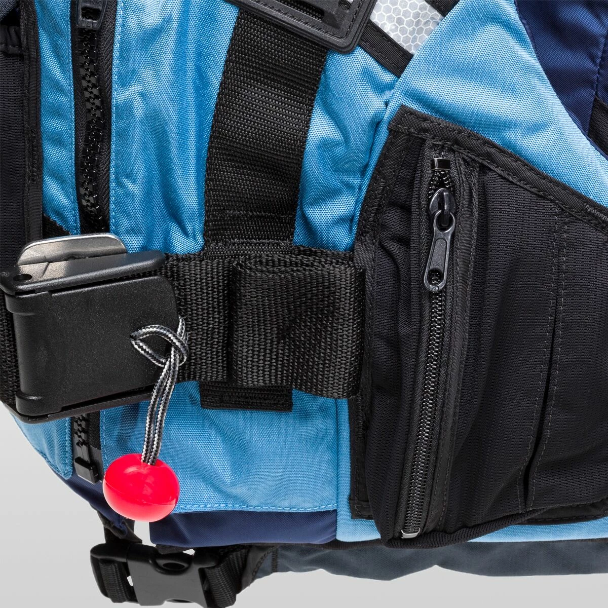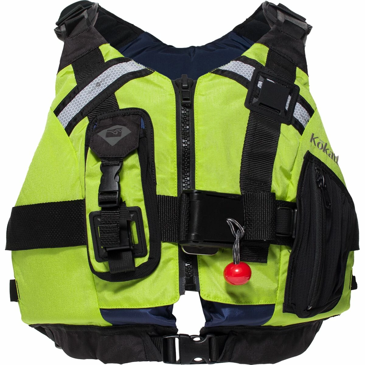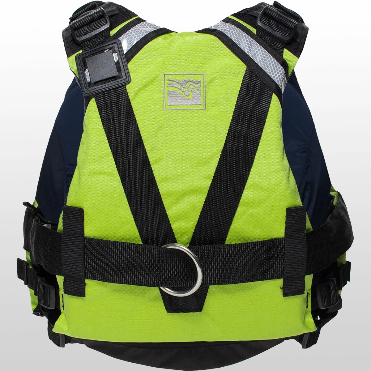 Built specifically for guiding on an ocean kayak, the Kokatat Guide Rescue PFD is rated as a Type V personal flotation device by the United States Coast Guard, and is what we count on when paddling off shore. Beyond this rating, the Guide Rescue boasts all of the bells and whistles needed to guide, from tow-system readiness to high-visibility 3M reflective tape. This vest is also built with super durable 500D Cordura and articulated seams. The combination of durability and organization helps keep us prepared on the water.