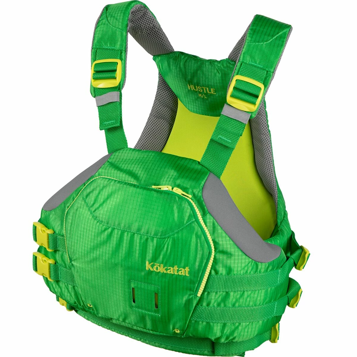 The Kokatat Hustle Life Vest is a low-profile, side-entry PFD that provides Type III rated flotation suitable for all-day comfot on calm paddling trips. Stacked, scuplted foam paneling wrap and float around the torso, and high-tenacity nylon ensures long-lasting durabilit. The last tab has an attachment for recue knives.