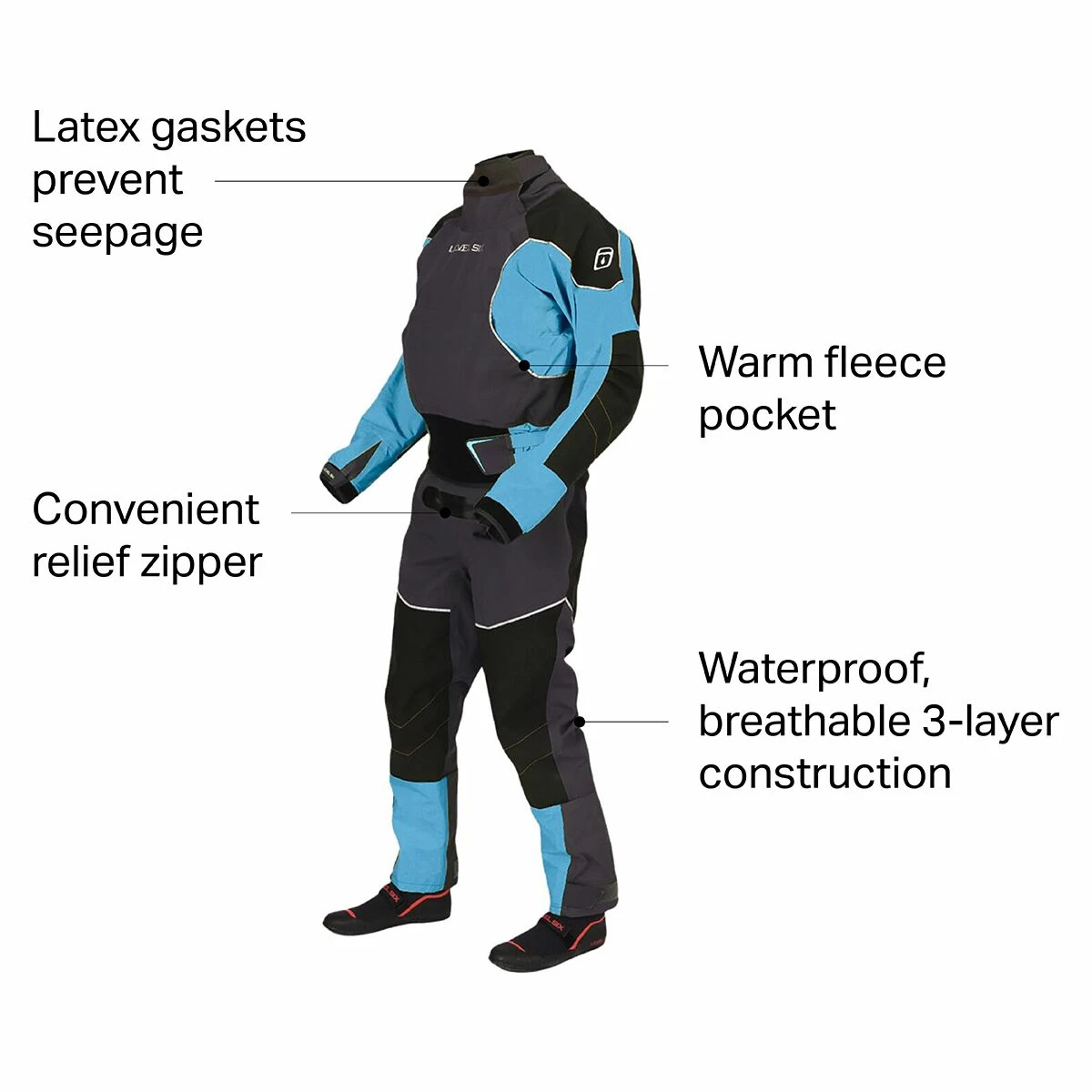 The Level 6 Emperor Drysuit is lightweight and breathable while maintaining an excellent level of waterproofing thanks to its three-layer eXhaust construction and latex gaskets. A waterproof, TiZip zipper makes getting in and out of the suit a breeze at the beginning or end of your trip, or lets you vent the suit for maximum airflow when you’ll be out of the water for a while.