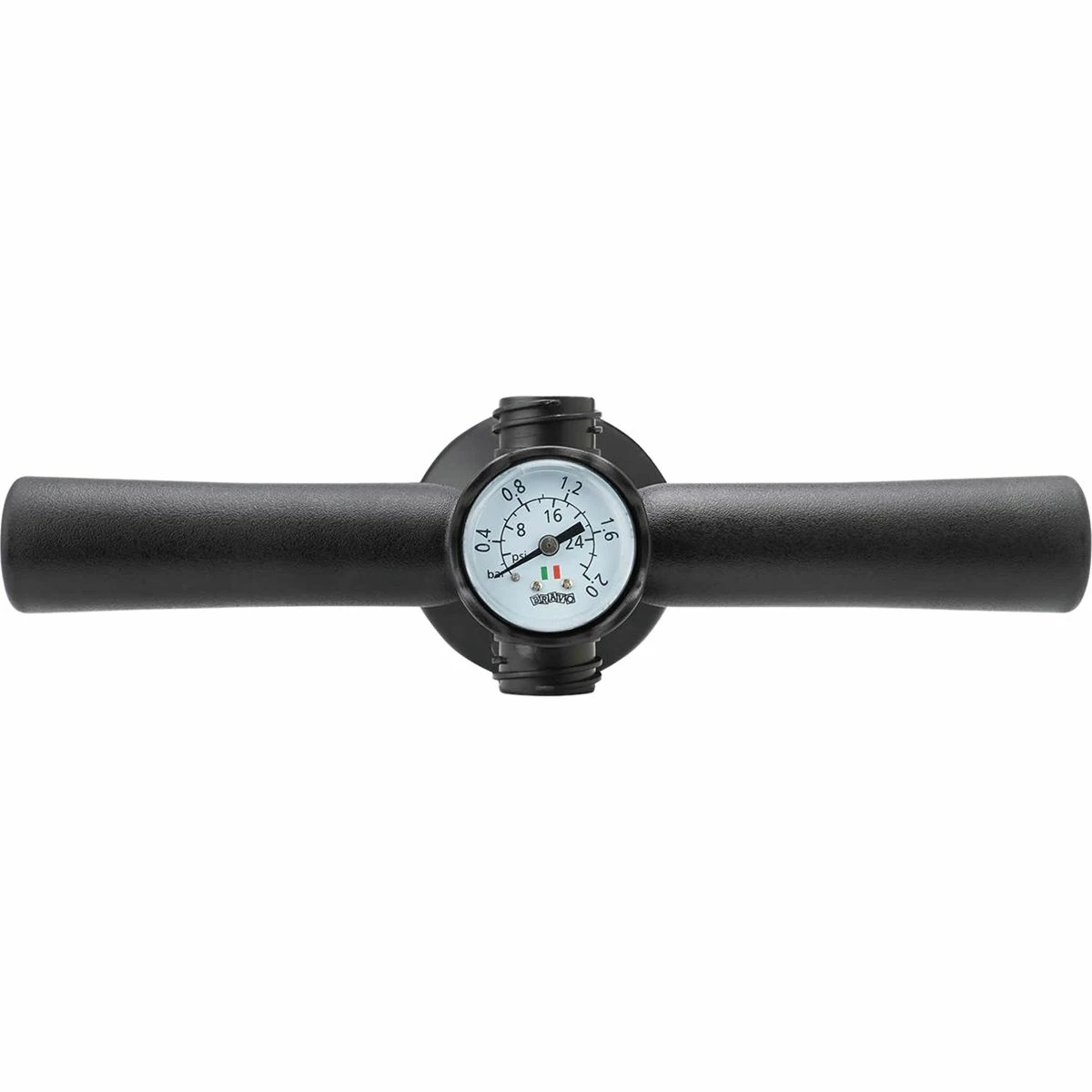- Built-in gauge aids in reaching optimal pressure for varying inflatables