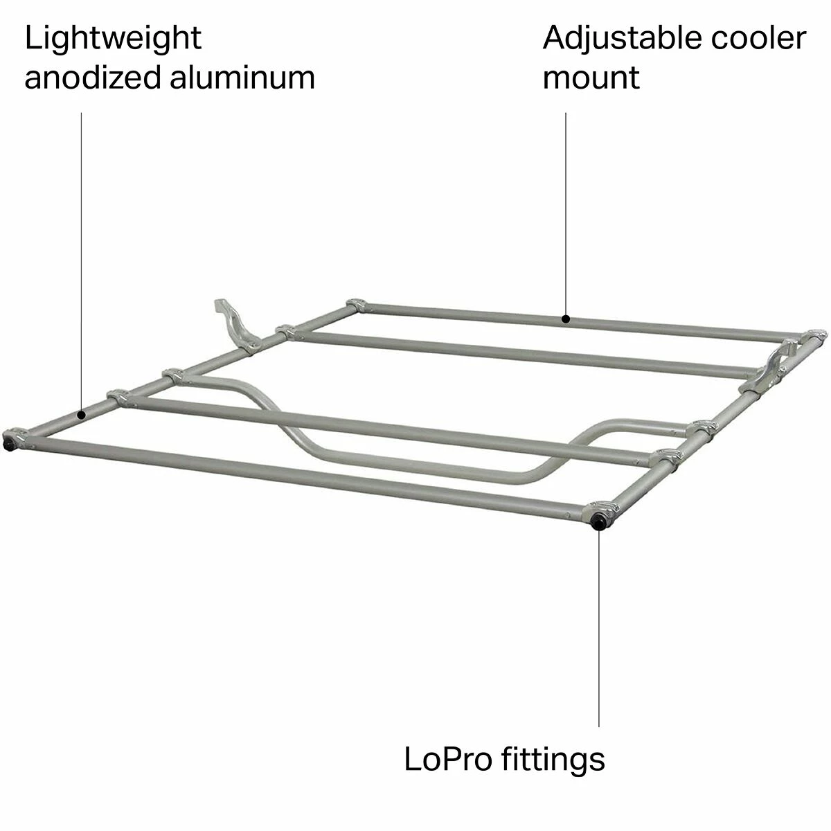 The NRS Compact Outfitter Raft Frame is exactly what we recommend you use to stabilize and organize your raft. We appreciate the two side rails and four cross bars that add rigidity and help us lash down our dry boxes or coolers. You can use these as seats, or add a compatible NRS seat (not included) to the system for comfort. LoPro fittings allow you to customize and adjust frame parts and accessories, and the anodized aluminum construction provides durability without weighing you down. Compatible with accessories like casting platforms and thigh bars, this frame can be customized to your exact needs.