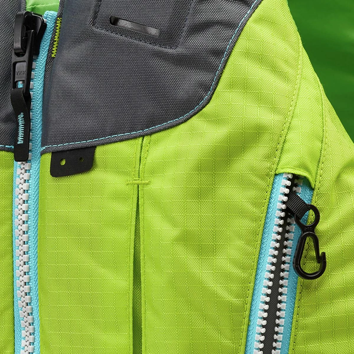 - Closure: front zipper