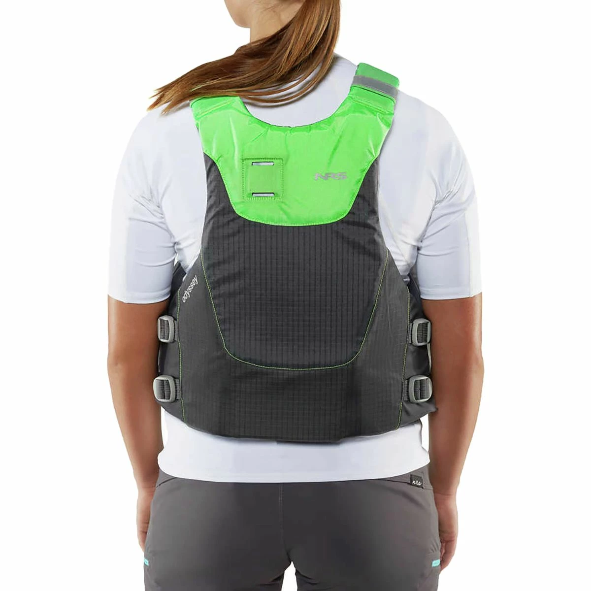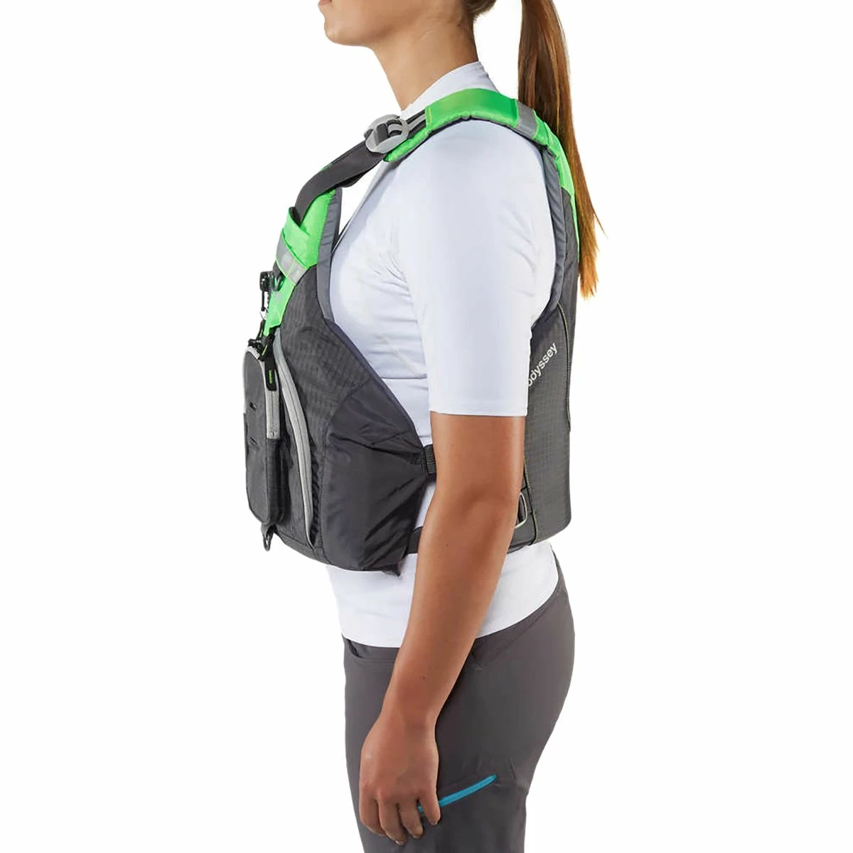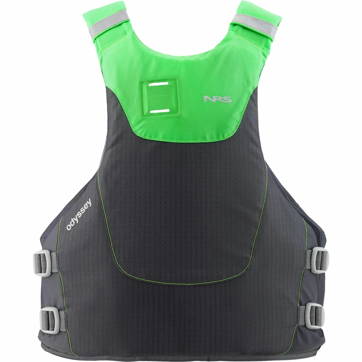 NRS designed the Odyssey Personal Flotation Device with full mobility in mind for sea kayakers and touring. It’s a type III PFD that uses NRS’s Cool Flow System for advanced ventilation as well as mobility. There are six adjustable straps to customize the fit, and a zippered front entry secures the fit. Two of the four front pockets are dual-entry and sized for VHF radios, and 3M paneling along the upper back adds visibility in low light.