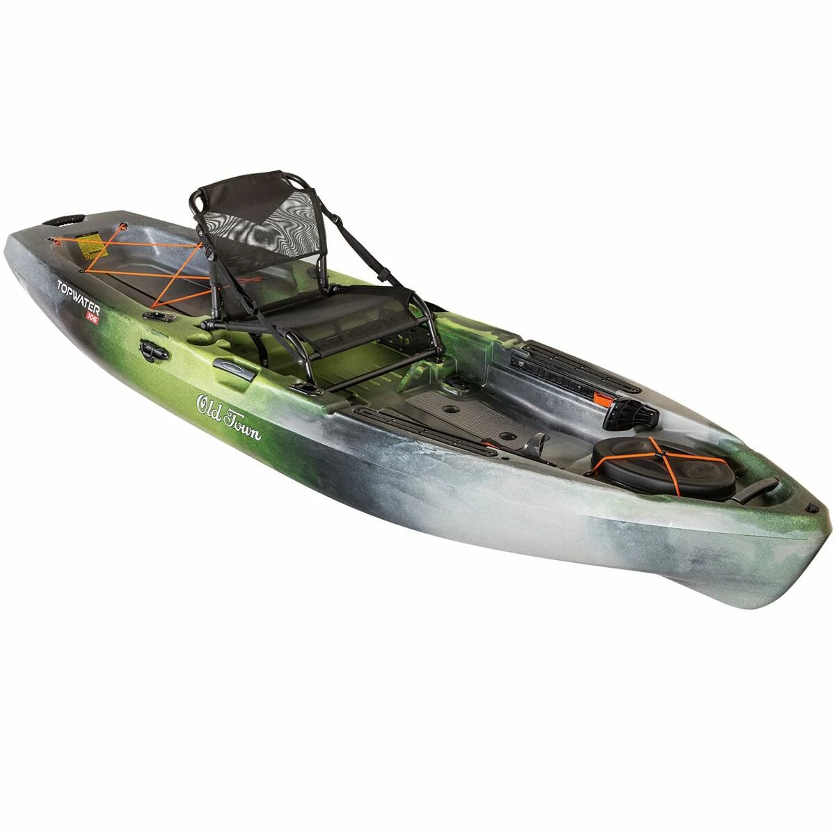 The Old Town Topwater 106 Kayak is the sit-on-top vessel we need for comfortable, fun days on the water. Its DoubleU Hull Design has the stability and maneuverability reminiscent of a pontoon boat, making cruises across the water quiet and smooth. This stability is paramount for fishing from a standing positionâa feat that the EVA foam deck pads help make more enjoyable. The ElementAir seat is adjustable in both high and low positions, so whether we’re casting or paddling we can find a comfortable way to sit that doesn’t block the air. A centered strap sits between the foot braces making standing up and sitting down without rocking the boat easy. Three rod holders let us bring along plenty of options, and integrated storage options hold our tackle and other gear. The universal transducer mounting system makes mounting almost any fishfinder a breeze, so we can customize our boat just how we like it.