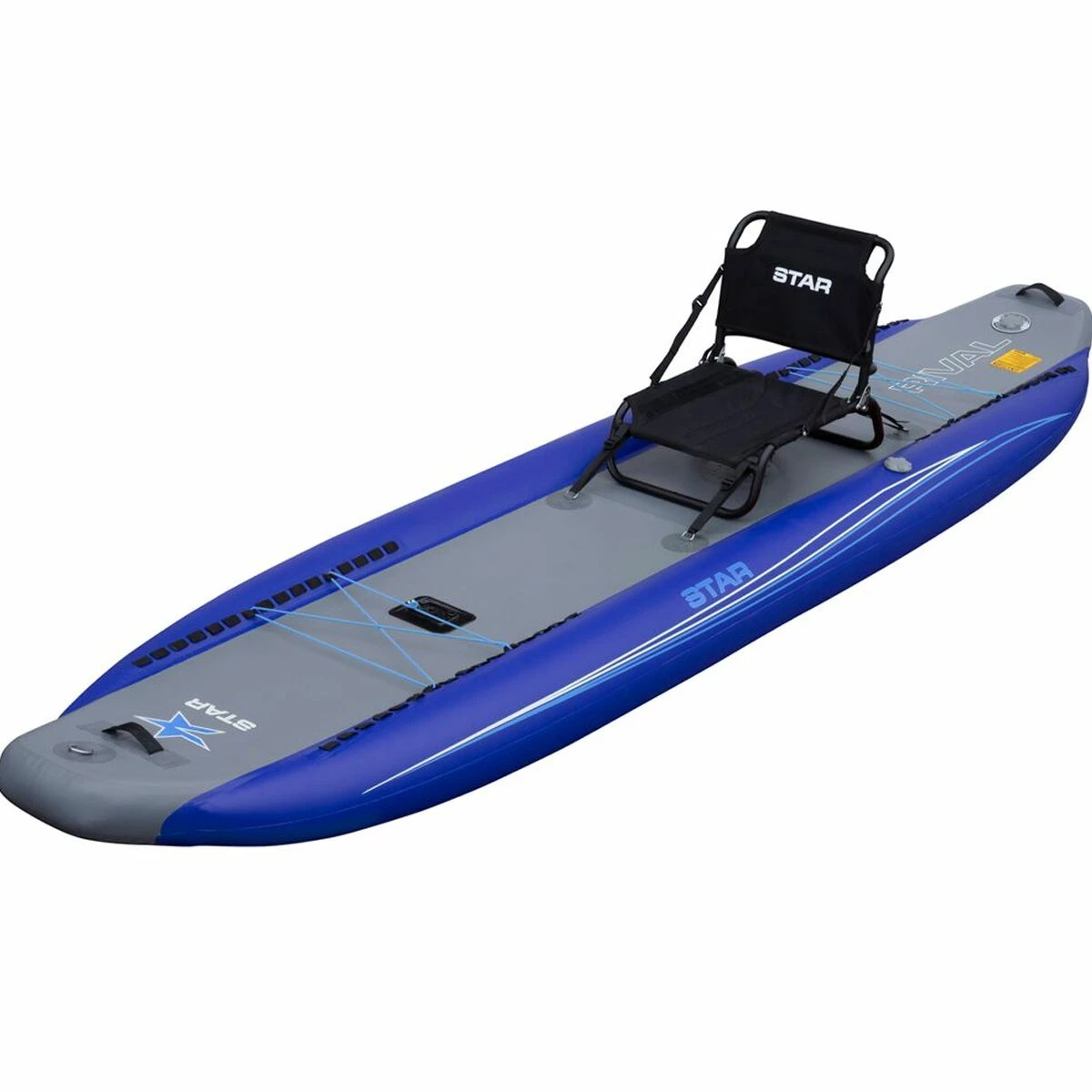The Star Rival Inflatable Kayak is designed as a sit-on-top boat ready for extended adventures on the water. The self-draining deck and rigid floor combine to provide a stable and stress free platform for beginner paddlers. Meanwhile the wide design with multiple lash points ensure you can bring along everything you need for your mission.